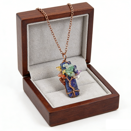 🌟7 Chakra Gemstone Wire Wrapped Natural Clear Quartz Healing Crystal Point Pendant Necklace
