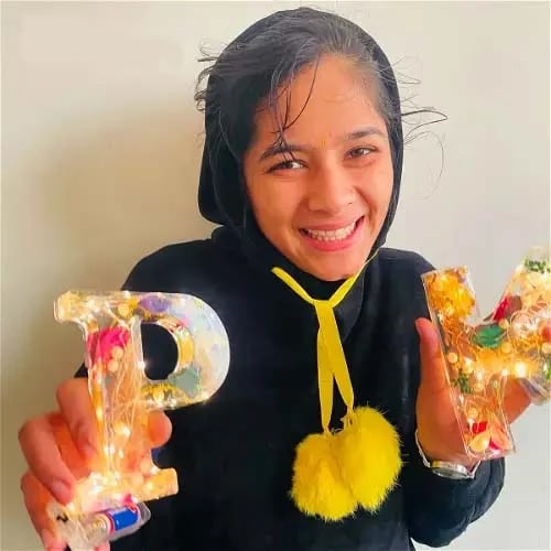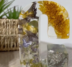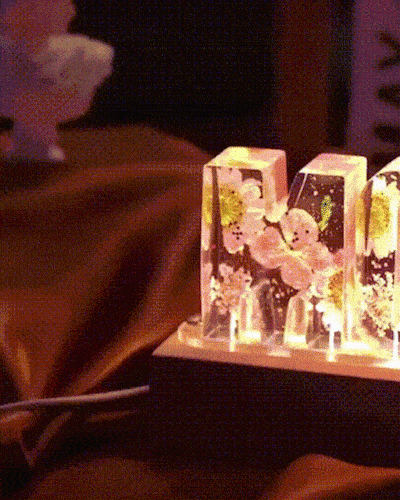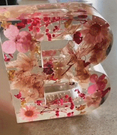 Width: Determined by the letter ratio - Materials: Epoxy resin, real dried flowers, dried flowers, mica powder, colored mica powder