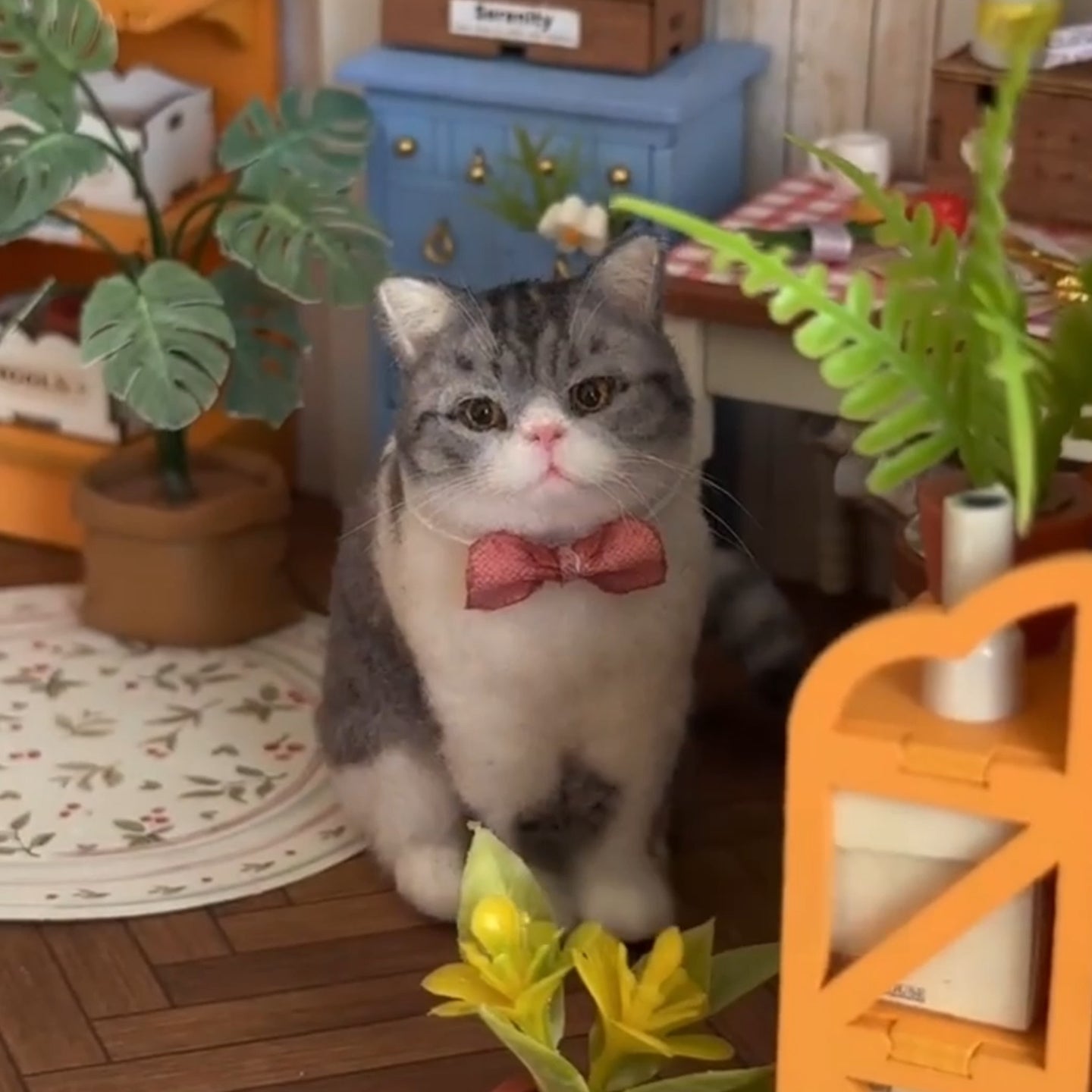 This tiny felt cat looks like it just witnessed something it absolutely cannot explain — and that’s exactly why people love it.