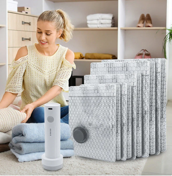 Travel Vacuum Compression Storage Bags with USB - Rechargeable Electric Pump