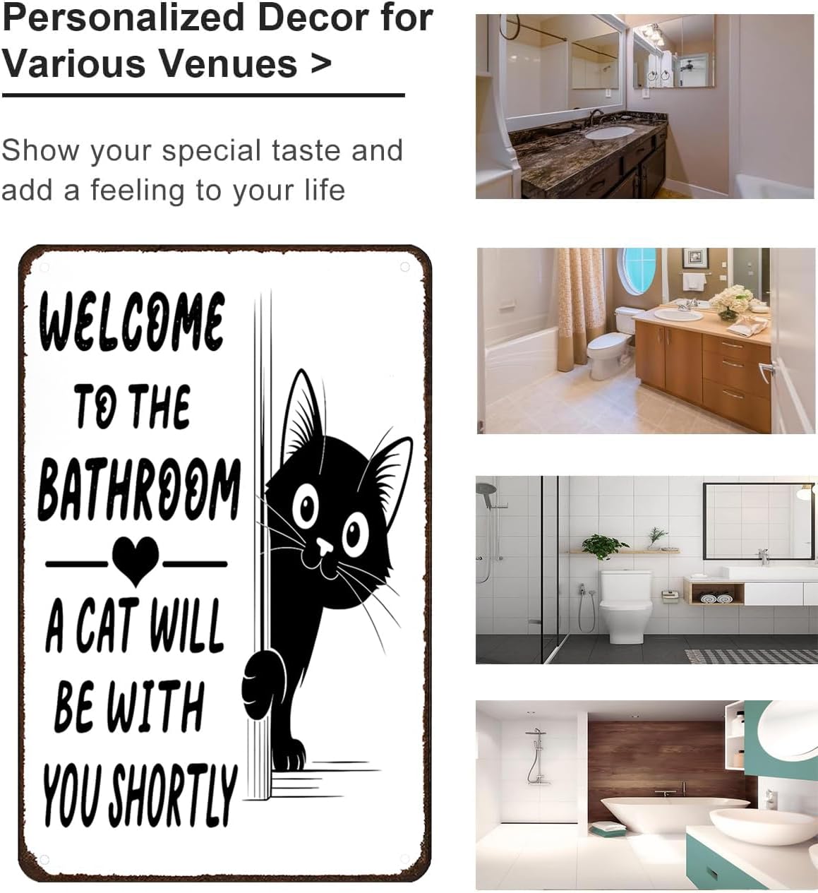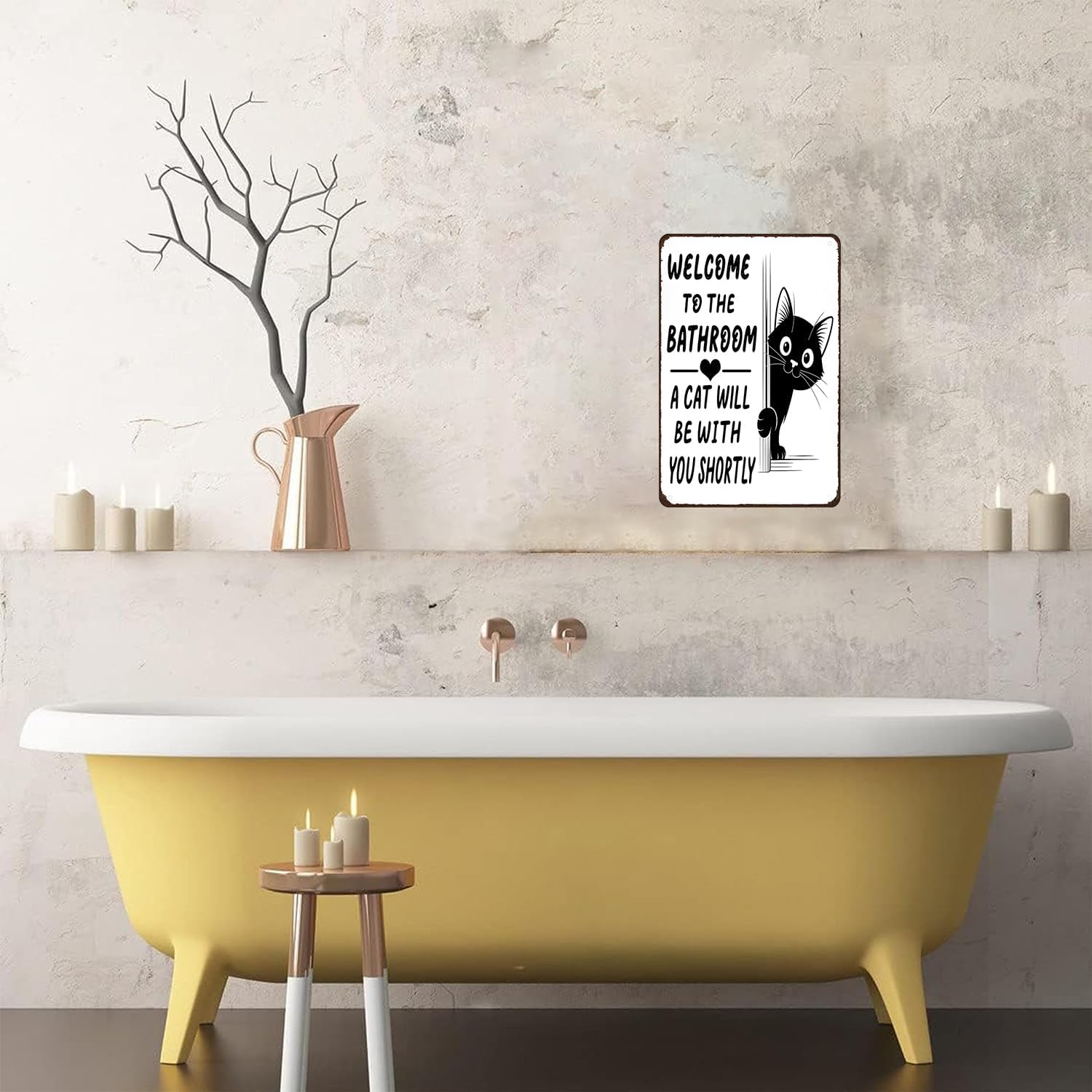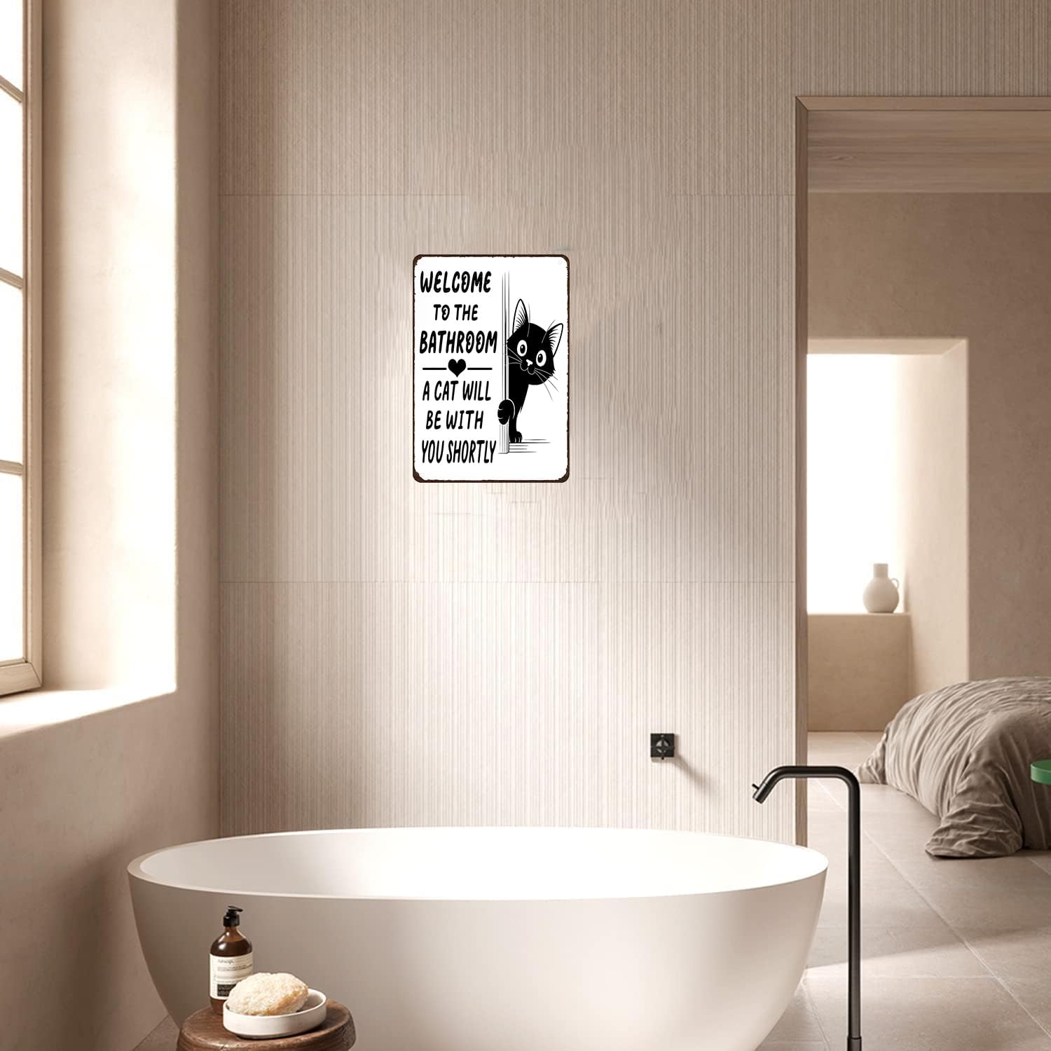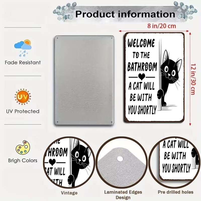 The playful message “Welcome to the bathroom — a cat will be with you shortly”, paired with an adorable cat peeking around the corner, adds instant charm and humor. It’s a gentle reminder that when you have a cat, you’re never truly alone—even in the bathroom.
